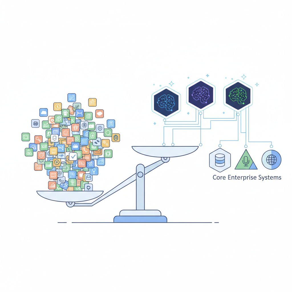 - Rationalize SaaS stacks: Many enterprises can reduce spending 30-50% by replacing point solutions with AI agents